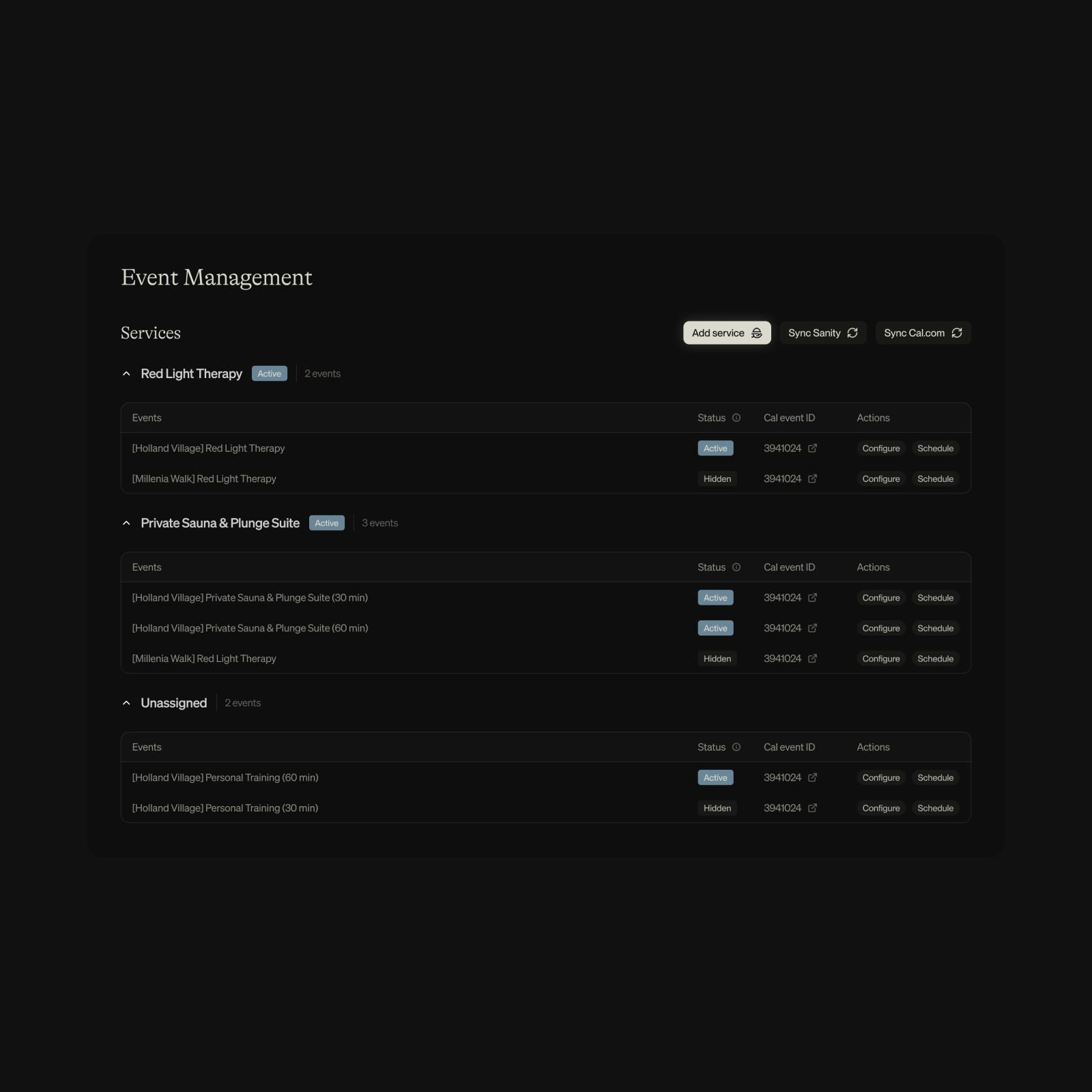 We built a custom CMS on top of Sanity that allows staff members to easily edit featured services, location details, and other elements on the site, while syncing that data with the portal that users can easily book services on.