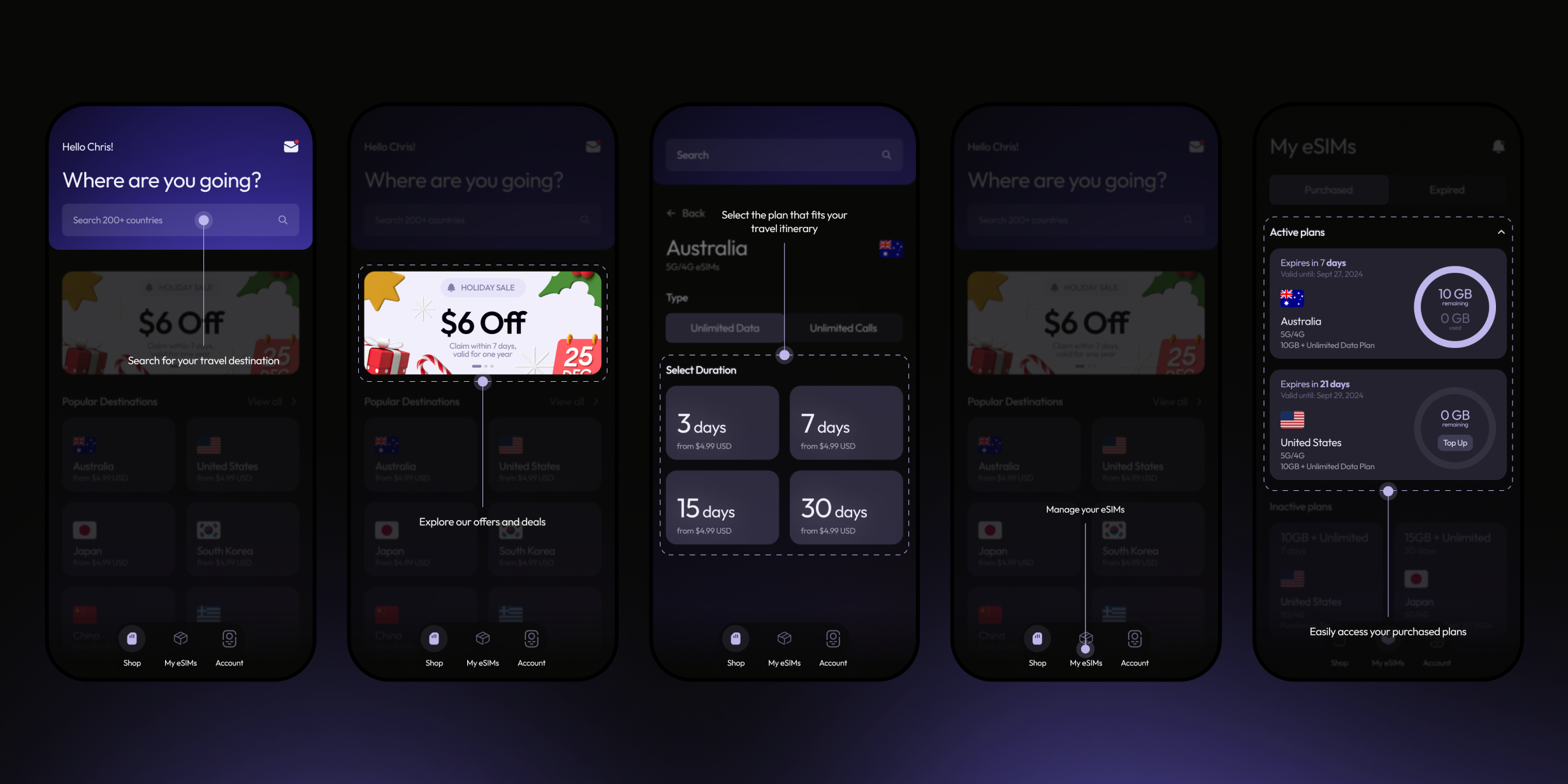 We partnered with PhoneSIMGo to deliver a full-scale brand and UX makeover — launching a friction-free eSIM app and website that speak to travelers in 200 + countries, simplifying buying and activating data.